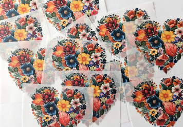 Thermotransfer-Bilder werden mit einem heißen, trockenen Bügeleisen oder einer Wärmepresse auf saubere, gebügelte Stoffoberflächen aufgebracht. Eine Seite des Motivs ist mit einem hitzeaktivierten Kleber versehen, der sorgsam – mit der Kleberseite nach unten – auf den Stoff oder das Textilstück deiner Wahl aufgelegt wird. Anschließend wird ein heißes Bügeleisen 8 bis 15 Sekunden lang auf das Etikett gedrückt. Sobald die Folie vollständig abgekühlt ist, kann sie vorsichtig abgezogen werden, sodass das Etikett bzw. der Aufdruck fest auf der Oberfläche des Artikels haften bleibt.